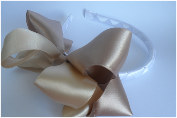 Tiara/Arco Revestido com trançado de fita de seda branca;